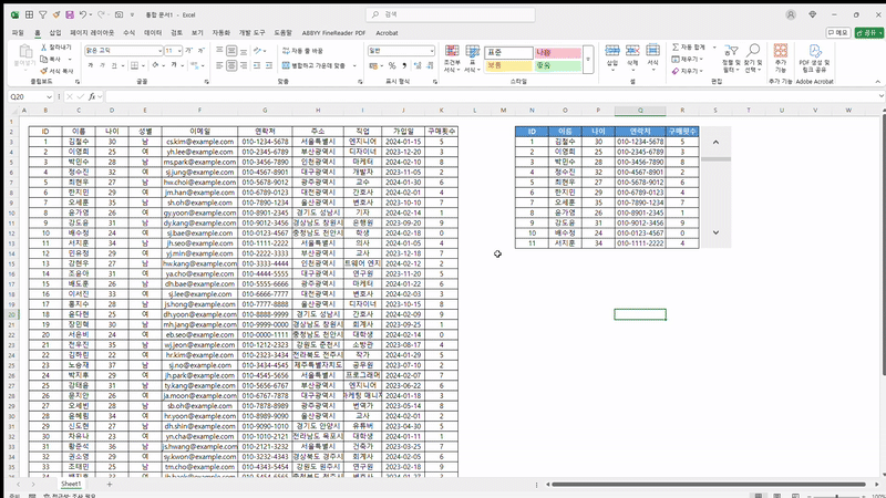 특히, 다른 시트에 작은 테이블을 만들어 놓으면 시트 이동 없이도 특정 고객의 정보를 바로 확인할 수 있어 데이터 관리가 훨씬 편리해집니다.