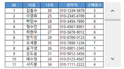 이제 스크롤 막대를 활용하여 데이터를 조회할 준비를 해봅시다.